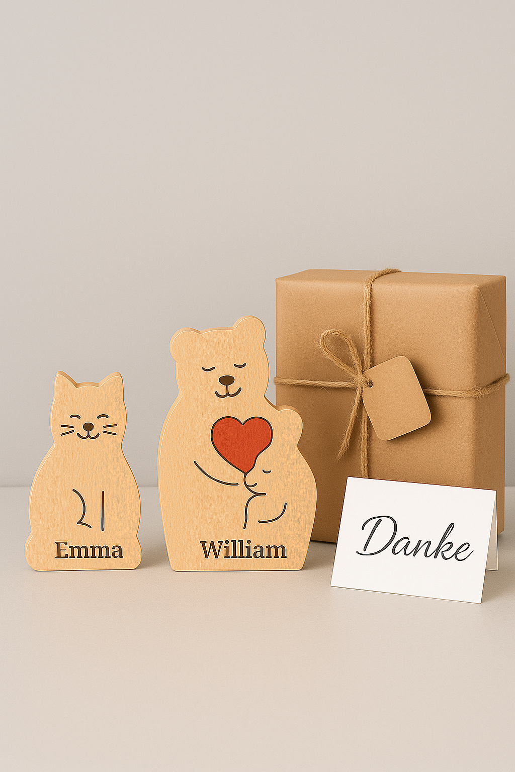 Jedes Stück wird mit Sorgfalt handgefertigt und personalisiert – für Menschen, die etwas Einzigartiges verschenken möchten.